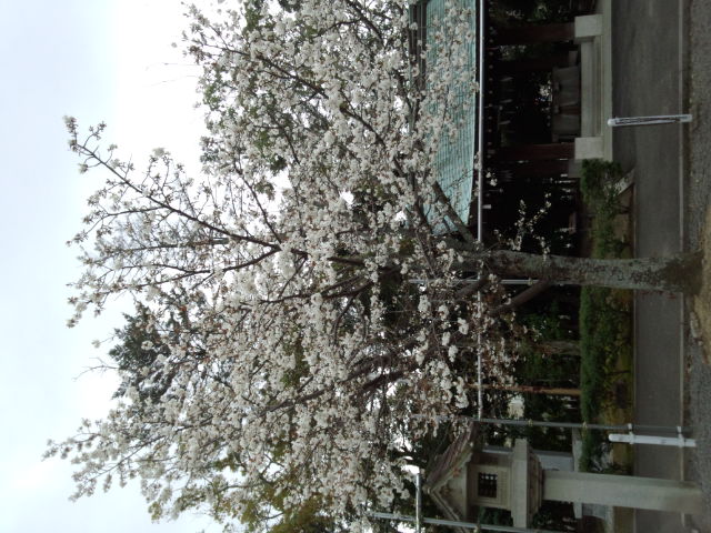 手水舎前のヤマザクラです。
